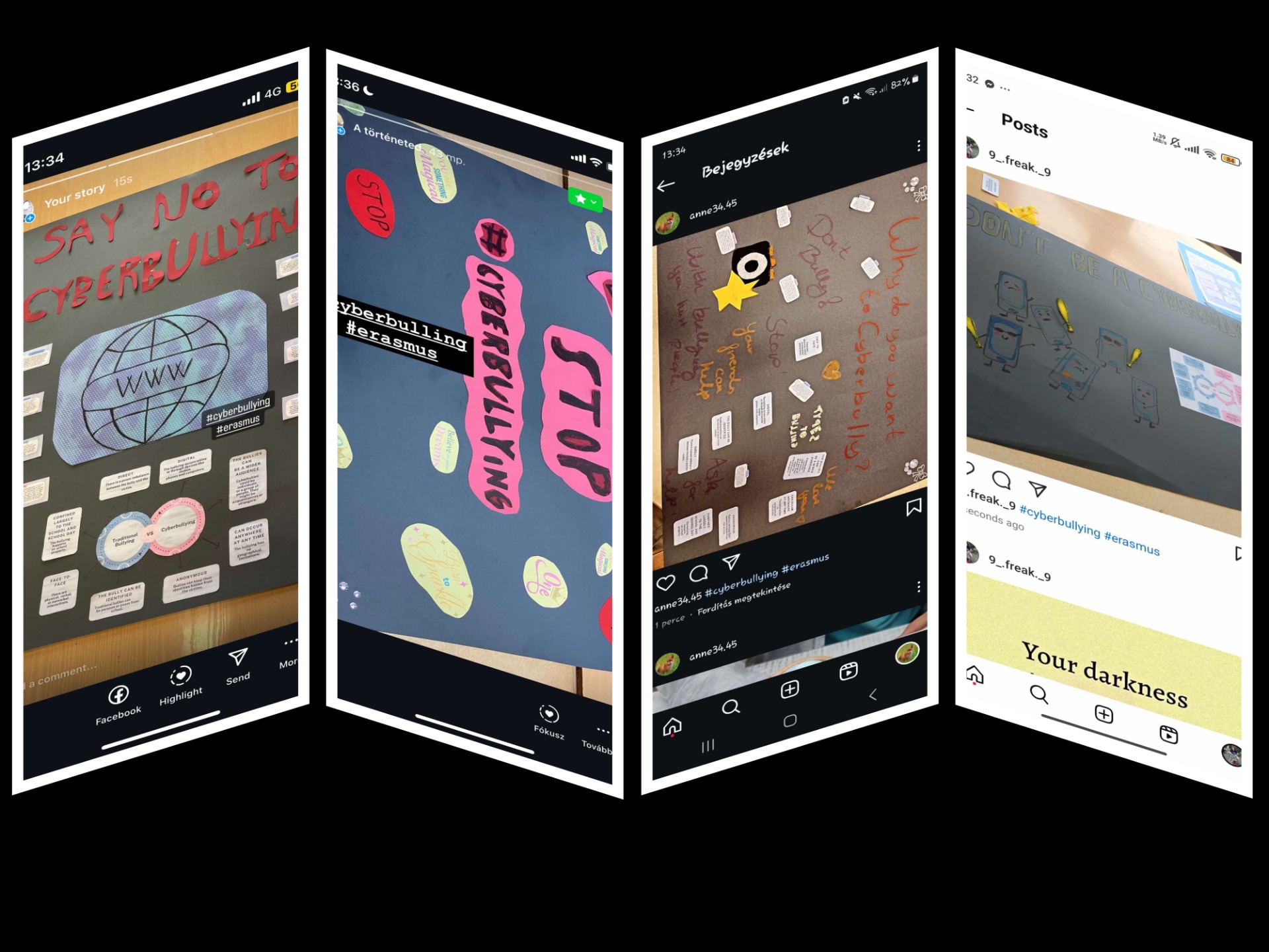 Apart from the project's Instagram account, students also shared and promoted the project through their personal profiles, raising awareness about cyberbullying at the same time. Here is a collage with a few examples.